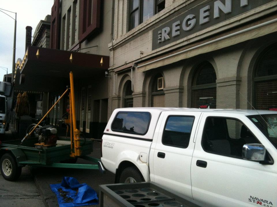 We’ve sampled in some strange places. Here we are early one morning testing the soil below the footpath in Lydiard Street, Ballarat for a new verandah.